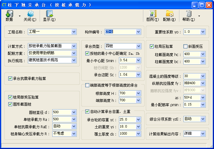 摘要:根据桩承载力验算二桩至二十桩柱下独立承台的桩基竖向承载力、受冲切/受剪/受弯/局部受压承载力,可自动计算承台截面尺寸。